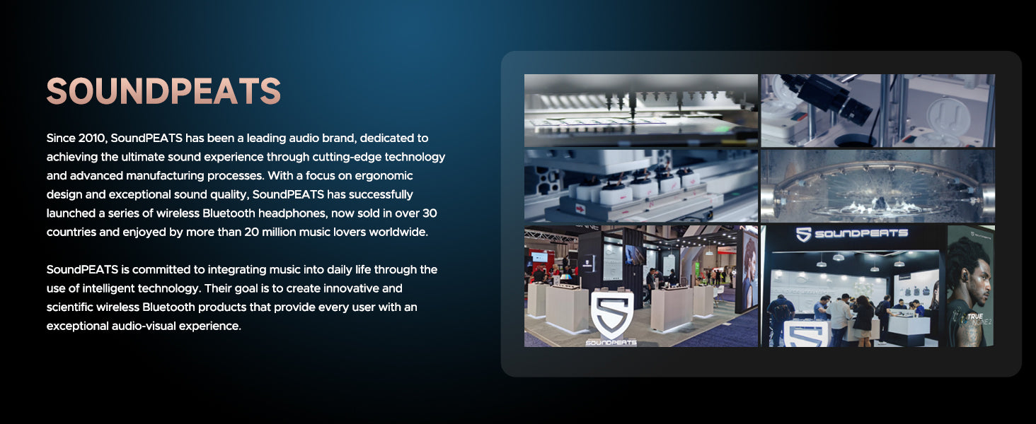 Innovation For Next Generations Has been innovating in audio technology for 14years, SoundPEATS is a renowned audio brand that has been committed to the pursuit of the ultimate original sound reproduction through intelligent technology and sophisticated manufacturing processes for years and SoundPEATS is committed to providing an hifi unparalleled listening experience to upcoming generations.