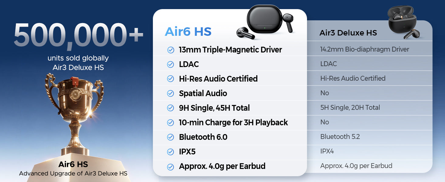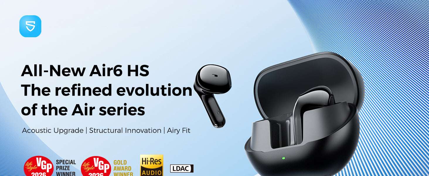 | What's in the Box | Soundpeats Air 6 HS Earbuds, USB-C Charging Cable, User Manual, App Guide, Peats Sticker |