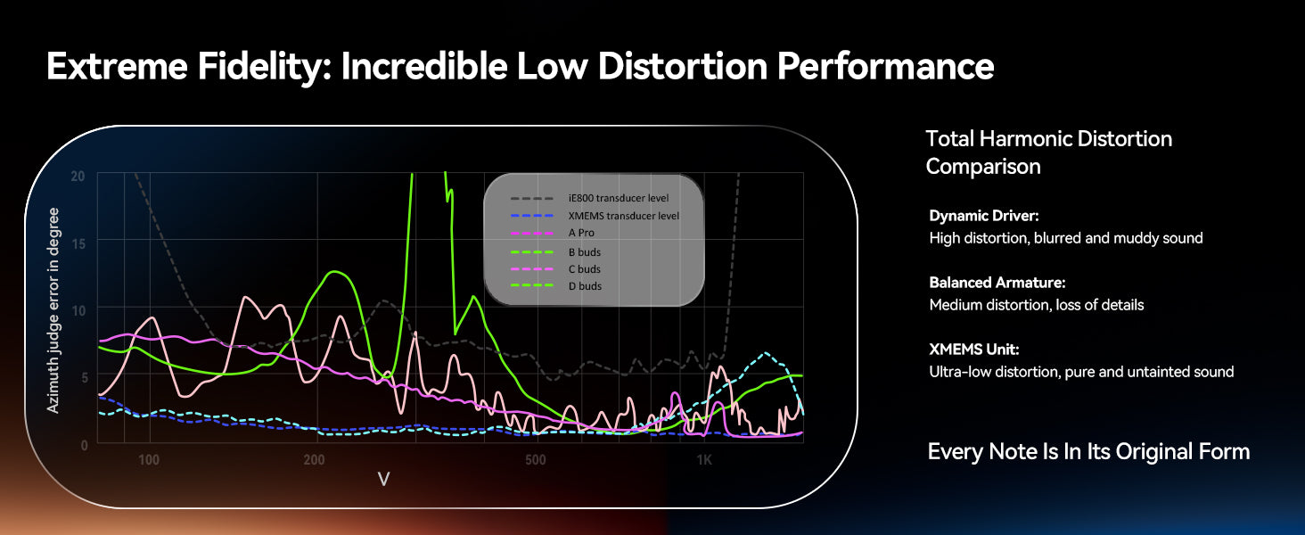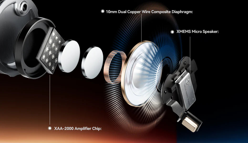 Unlike traditional designs, the MEMS driver features a monolithic structure that ensures exceptional stability. Its ultra-light diaphragm moves with extreme precision, delivering outstanding transient response and minimal distortion. This rapid attack and decay allow for crystal-clear treble reproduction and finely detailed spatial expression. Manufactured through semiconductor processes, MEMS drivers maintain highly consistent performance between left and right channels, creating a precisely focused sound image and an expansive soundstage beyond what conventional drivers can achieve.