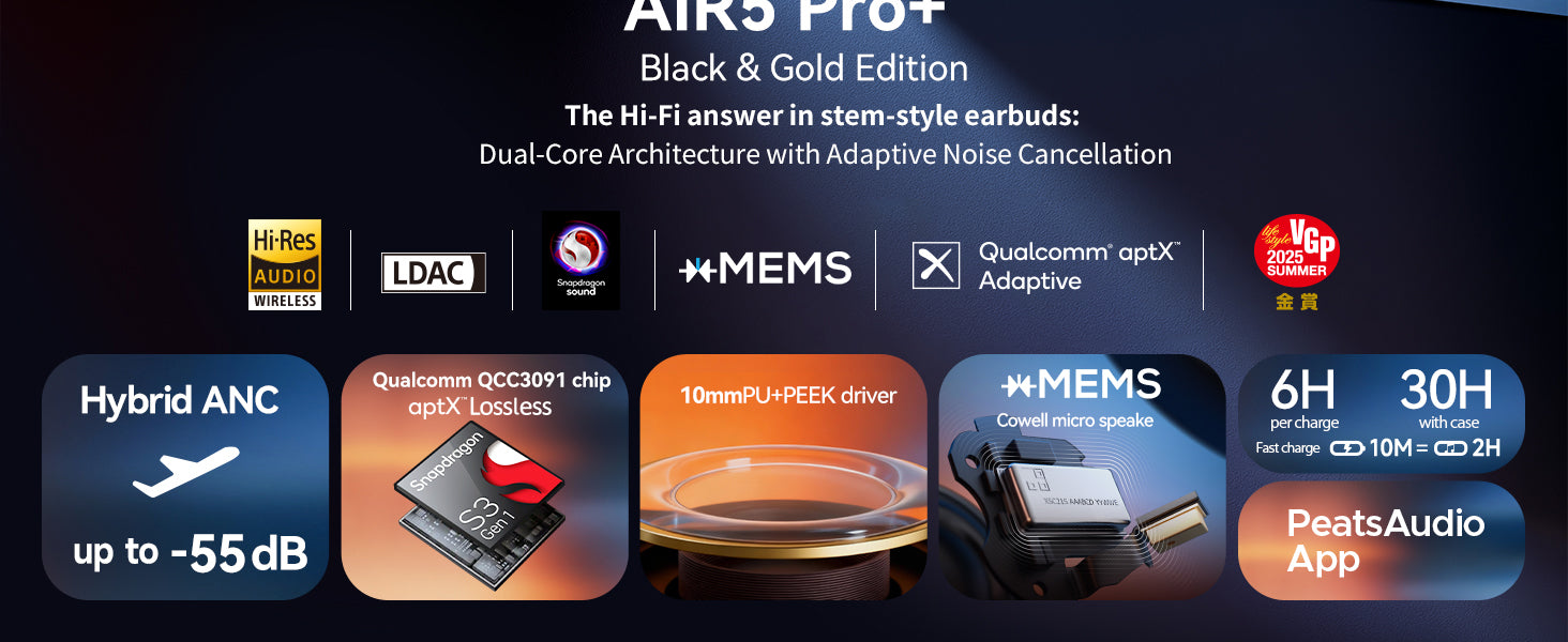Soundpeats Air5 Pro+ xMEMS & Aptos Class-H Amplifier, LDAC & aptX Lossless, LE Audio, Hi-Res Audio
