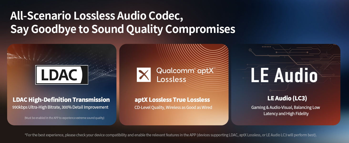 🔻Supports aptX Lossless, LDAC, and LC3 codecs