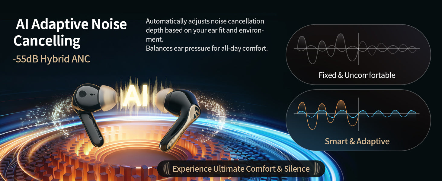 55dB Adaptive ANC & Pure Noise-Free Background