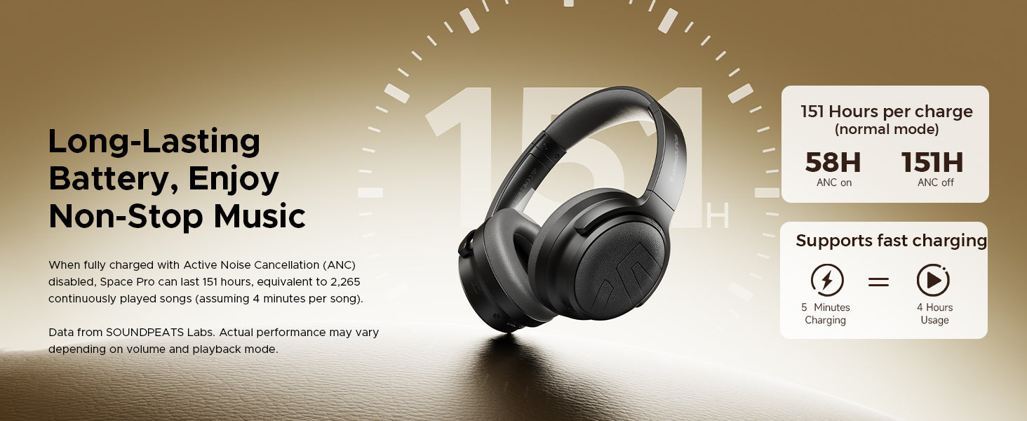 🔻Up to 151 Hours Battery Life + 5-Min Quick Charge = 4 Hours Playback