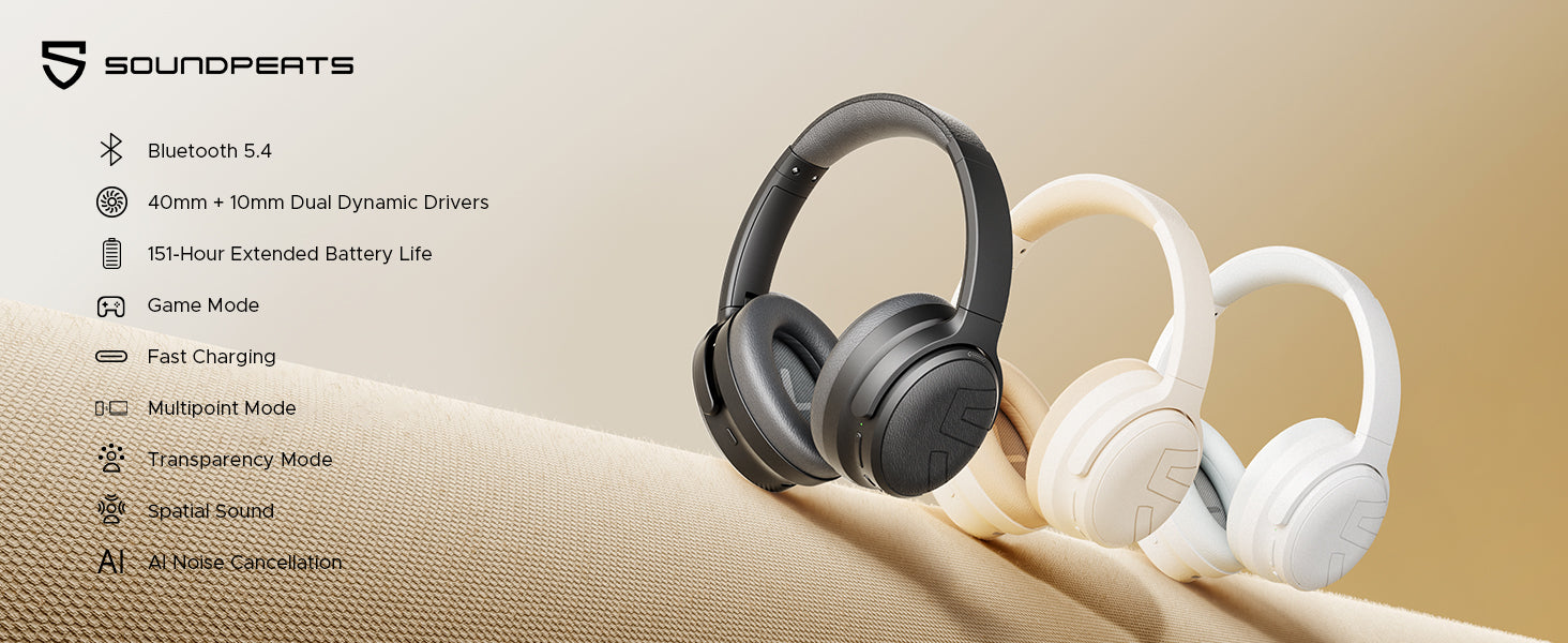 What's in the BoxSoundpeats Space Pro Over-ear Headphone, Type-C Charging Cable, App Guide, User Manual.